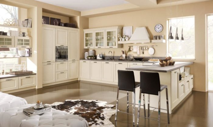 Choisissez des nuances naturelles de n'importe quelle couleur, alors la cuisine ivoire sera harmonieuse.
