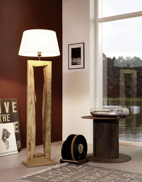 Le pied d'un tel lampadaire, comme son abat-jour, peut être réalisé en tout matériau et avoir une forme différente. Il peut être facilement déplacé dans la pièce ou déplacé dans une autre pièce.