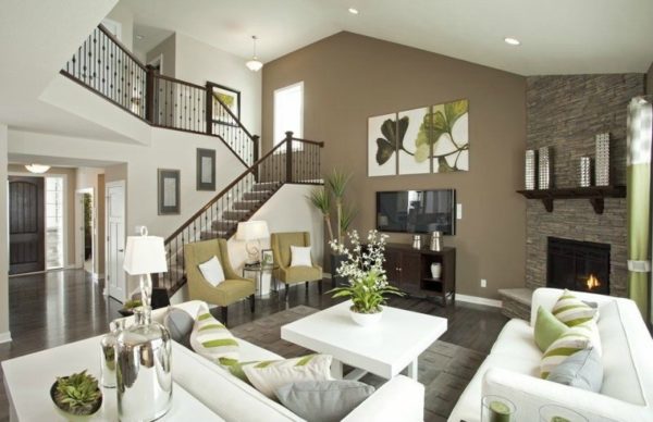 Vous pouvez peindre tous les murs sauf un dans une pièce avec une nuance neutre, comme le beige, et mettre en évidence un mur avec des nuances vives de rouge, orange, etc. Peignez la finition (par exemple, les corniches de plafond) dans une couleur différente des murs.