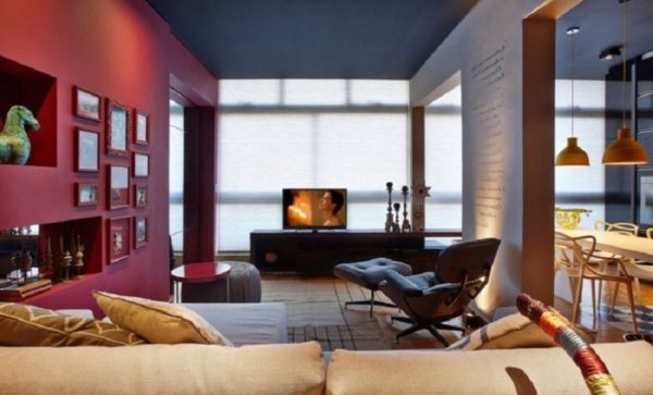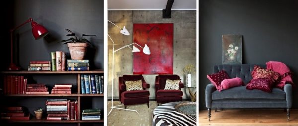 Voici un certain nombre d'idées prêtes à l'emploi qui reflètent les tendances à l'intérieur des locaux à des fins et des styles divers, qui aideront à déterminer l'utilisation de la couleur de Marsala dans les proportions et les combinaisons correctes. Ces idées peuvent devenir la base de la créativité sans copie directe et vous aider à créer votre propre design unique.