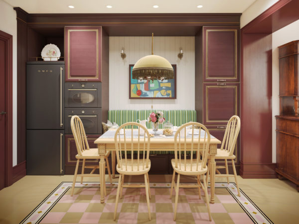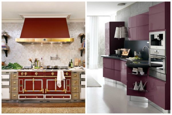 Une cuisine de couleur Marsala peut sembler sombre si cette teinte est dominante. Par conséquent, nous donnons des exemples de l'utilisation active de la couleur et d'un intérieur neutre avec des accents de vin.