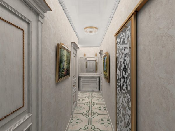 Et en conclusion, il convient de révéler trois secrets principaux pour concevoir un couloir étroit. La pièce doit être lumineuse, nous combinons donc un lustre avec un éclairage ou des appliques. Cosy, pour cela nous utilisons de petits tapis lumineux et fonctionnels, le mobilier ne doit pas être vide.