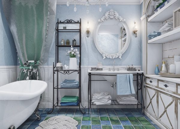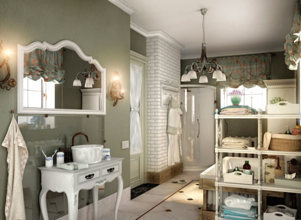 Presque toutes les exigences de style sont difficiles à remplir, eh bien, il y a peut-être une option pour avoir une telle salle de bain dans une maison de campagne spacieuse. Une autre option pour concevoir une salle de bain dans le style provençal sera une version adaptée, avec quelques éléments de style.