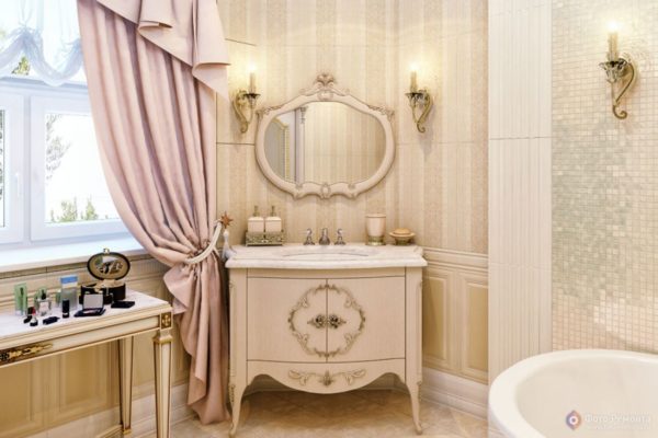 Pour créer une zone de relaxation profonde dans votre maison, une salle de bain est tout à fait adaptée, surtout si elle est réalisée dans le style du luxe français sophistiqué. Combien vous pouvez vous sentir "à l'aise" est une autre question. Il faut tenir compte du fait que le «plat» est d'une autre époque, et tout autour est trop saturé de l'esprit français.