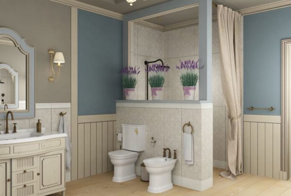 Pour comprendre à quoi devraient ressembler les murs d'une salle de bain dans le style provençal, il est important de surmonter le stéréotype de la perception de la salle de bain d'une personne moderne. La salle de bain, dans ce style français classique, est une pièce très confortable pour le repos et la détente, dans laquelle vous pouvez effectuer les procédures d'hygiène appropriées.