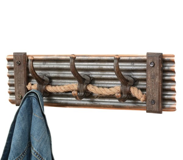 Pour une maison de campagne ou un hall de style champêtre, des planches de bois sont utilisées. Le degré de traitement dépend du goût, cependant, la texture naturelle doit toujours être en vue. Les crochets doivent être attachés à la planche, la planche au mur.