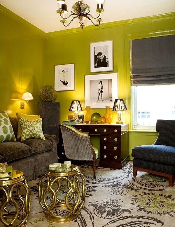 Un bon choix lors de la conception d'un bureau ou d'un bureau sera vert. Cette couleur sera particulièrement représentative lors de l'utilisation d'une teinte émeraude avec de l'or.
