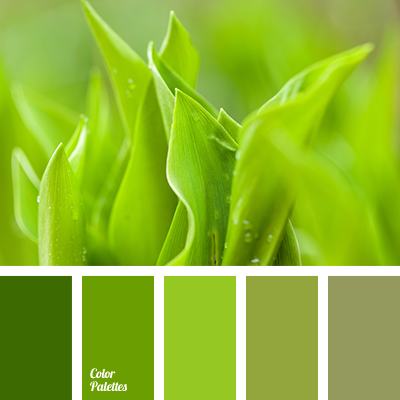 Toutes les nuances claires de vert créent une atmosphère détendue, légère et gaie; au contraire, l'olive ou le vert pâle attirent la sérénité et la tranquillité.