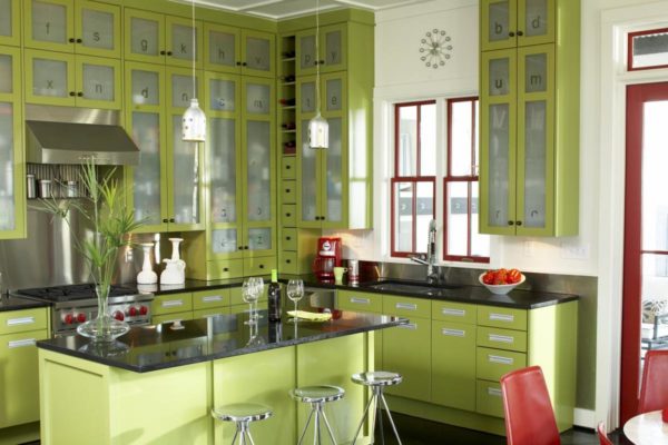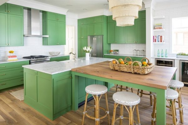 Pour créer du confort dans la cuisine, le vert doit être combiné avec des couleurs ensoleillées comme le jaune ou l'ambre, sinon la cuisine peut sembler trop froide.