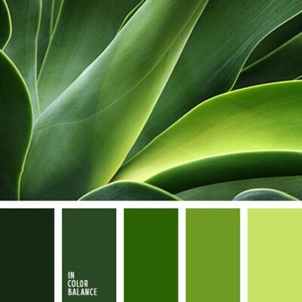 Toutes les nuances claires de vert créent une atmosphère détendue, légère et gaie; au contraire, l'olive ou le vert pâle attirent la sérénité et la tranquillité.
