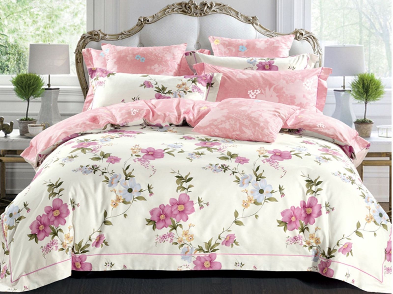 - Un ensemble de linge de lit en polyester. Des couleurs vives et originales vous égayeront, et un tissu de qualité qui ne se décolore pas durera plusieurs années. Prix: 1450 p.