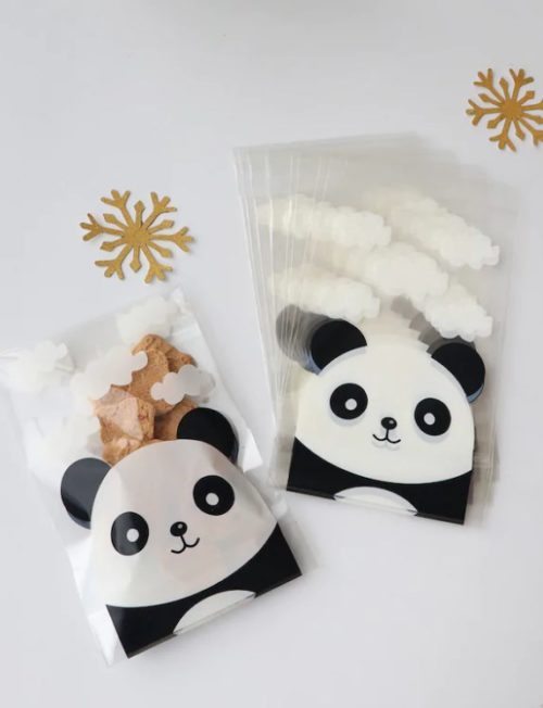 - Forfaits pour les cookies et le stockage du petit déjeuner. Dessin en forme de panda. Les élèves qui emportent des friandises avec eux pour une collation apprécieront vraiment. Prix: 330 p. pour 100 pcs.