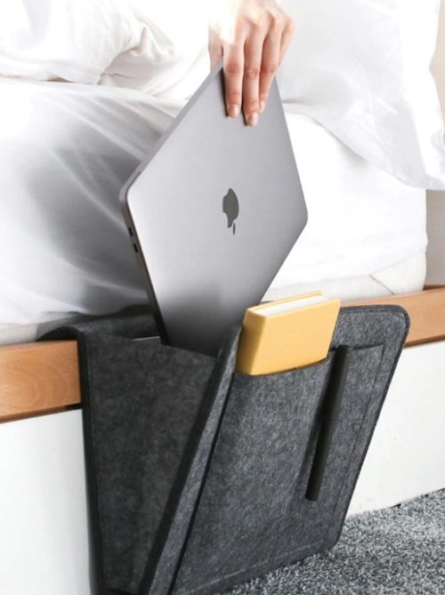- Organiseur pour ordinateur portable, téléphone et objets importants, facile à fixer sur le côté du lit pour que tout soit à portée de main. Prix: 510 p.