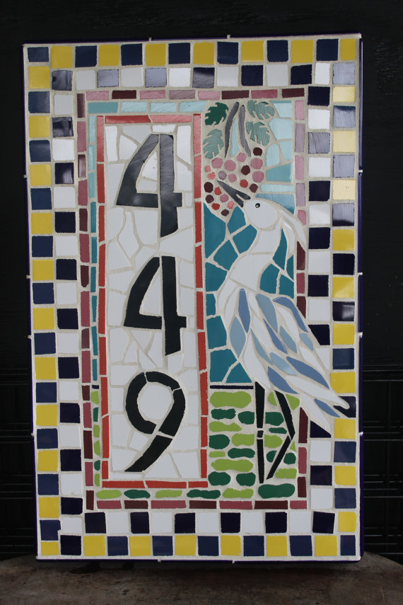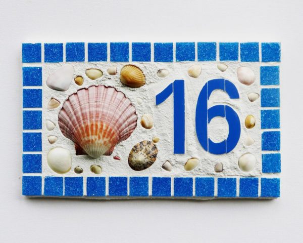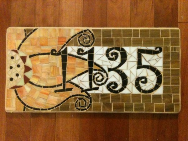La mosaïque semble inhabituelle. À partir de matériaux improvisés, vous pouvez créer de véritables œuvres d'art. De tels signes susciteront l'intérêt des passants et apporteront de la joie aux propriétaires de la maison.