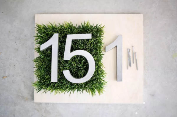 À quel point les numéros du métal sont intéressants sur un fond vert. Une telle composition sera toujours à la mode et aidera à distinguer une maison des autres. Pour faire le travail, vous devez vous efforcer, mais le résultat sera à la hauteur de toutes les attentes.