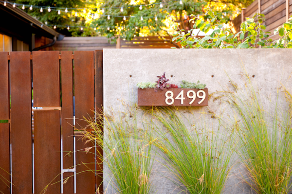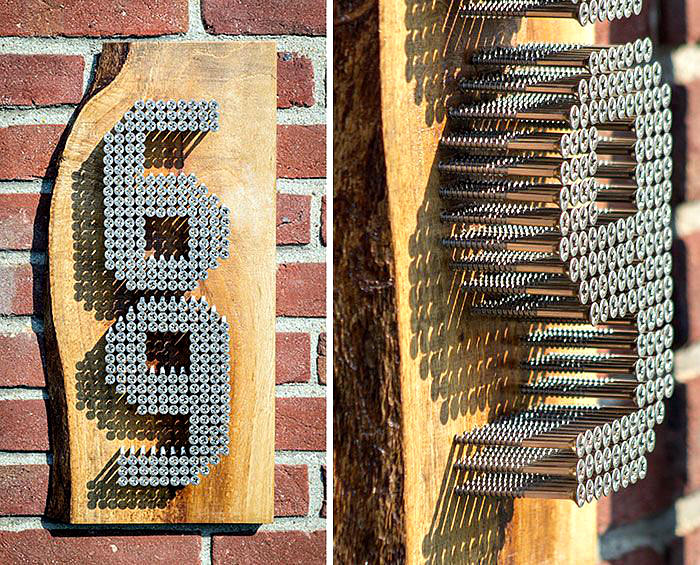 À quel point les numéros du métal sont intéressants sur un fond vert. Une telle composition sera toujours à la mode et aidera à distinguer une maison des autres. Pour faire le travail, vous devez vous efforcer, mais le résultat sera à la hauteur de toutes les attentes.