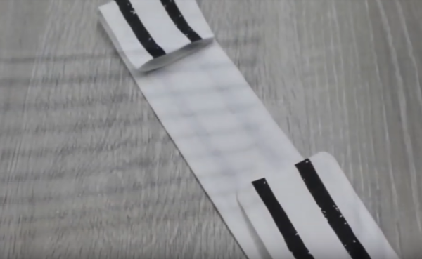 - Coupez 2 bandes de 10 par 50 cm pour la ceinture.