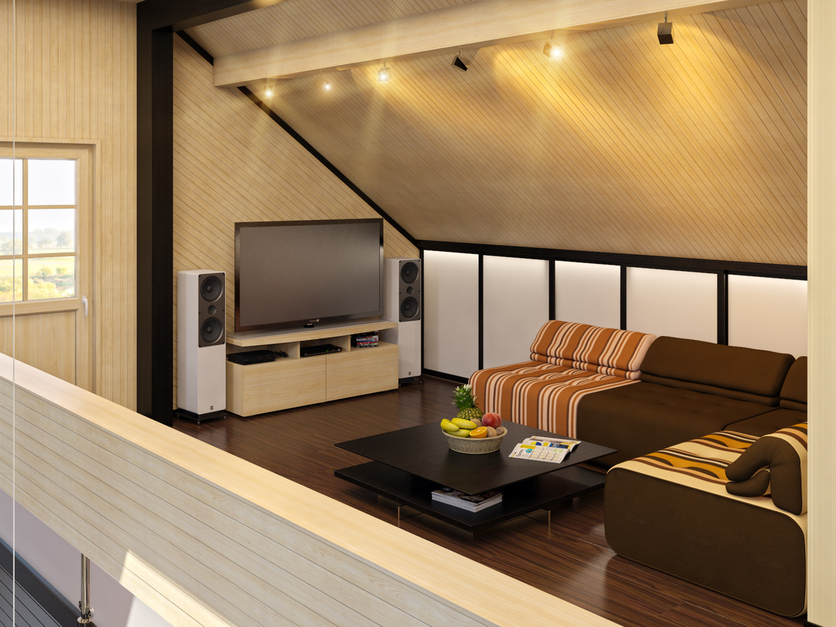 Grenier - un espace dans lequel vous pouvez mettre en œuvre de nombreuses idées de conception. Ici, ils placent une chambre, un bureau, une salle de jeux pour enfants et adultes, voire une cuisine-salon. Le réaménagement est mieux confié à des spécialistes.