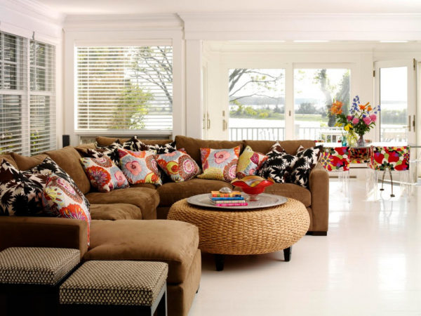 Les oreillers brodés ou tricotés ont l'air chic. N'oubliez pas les produits des grands-mères. Si vous connaissez la technique du point de broderie ou de la croix, sachez comment crocheter - une option exclusive décorera certainement votre salon.