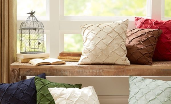 L'option la plus simple est d'acheter un tissu qui correspond à la couleur et au style de l'intérieur et d'en coudre une taie d'oreiller. Vous pouvez décorer à la main sur des boutons découpés dans des papillons et des fleurs en tissu.