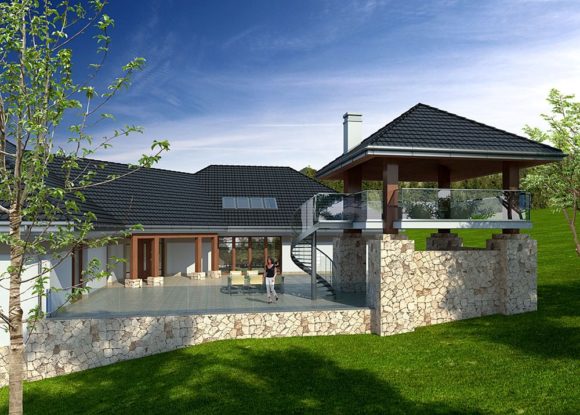 Pour augmenter l'espace dont vous n'avez pas besoin pour construire un étage entier: un petit espace supplémentaire peut être ajouté en utilisant des solutions constructives. Par exemple, certaines chambres peuvent être situées au rez-de-chaussée ou dans les combles.Une solution intéressante serait un toit en pente - sous un grand mur, le salon sera situé au calme. Et si au lieu du toit un revêtement plat est fait, alors en été, il peut être utilisé comme balcon ou aire de repos.