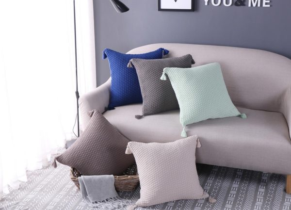 - Quatre oreillers faits de deux couleurs et textures différentes seront magnifiques. Nous les disposons par paires aux coins des meubles rembourrés, combinant des duos de deux textures différentes.
