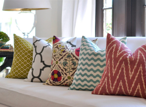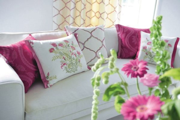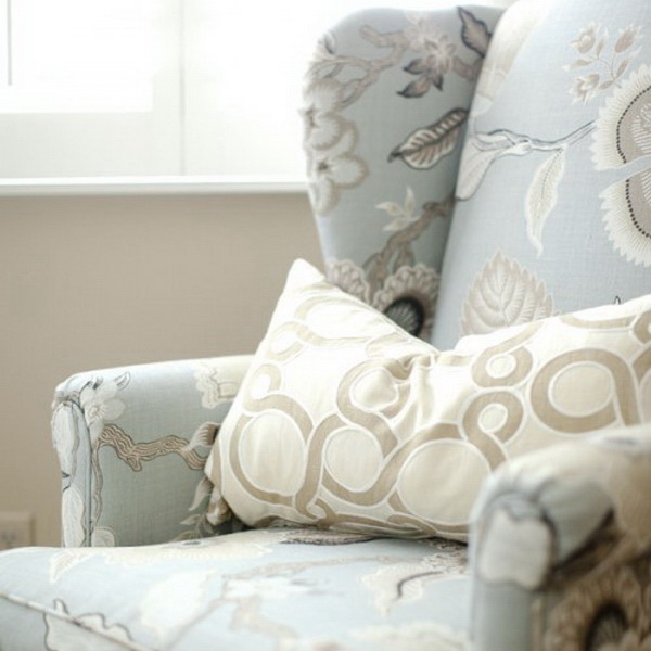 Des coussins en textile à imprimé floral ou géométrique dans ce ton complèteront la décoration des pièces réalisées dans le style provençal, anglais ou néoclassique.