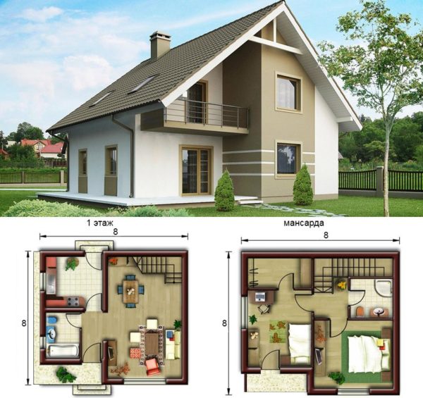 En savoir plus:Le projet de la maison 10x10 avec une excellente disposition sur 2 étages: dessins, conceptions et types de disposition des bâtiments
