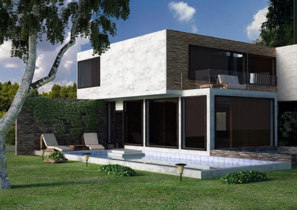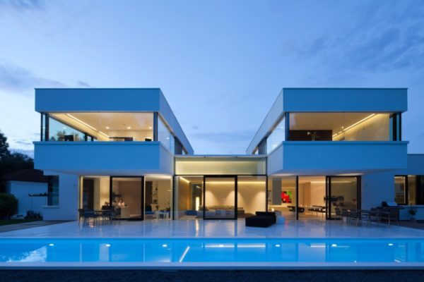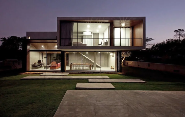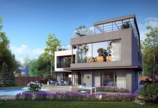 Sur le plan architectural, les maisons modernes de haute technologie empruntent pour la plupart des éléments au cubisme et au constructivisme: