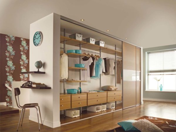 - Habitabilité. Les armoires coulissantes sont considérées comme les plus pertinentes récemment, ce qui permet de créer ergonomiquement un espace intérieur.
