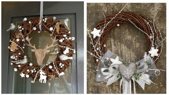 Les vacances devraient commencer par la porte d'entrée. Il existe de nombreuses options pour les couronnes de Noël décoratives. Sur Internet, vous pouvez ramasser des croquis et fabriquer vous-même ces bijoux. Si vous n'avez pas le temps de faire preuve de créativité, vous devez acheter le produit dans le magasin.