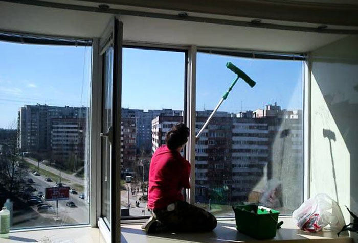 Pour les résidents des étages supérieurs, il n'est pas conseillé de laver les fenêtres du balcon de l'extérieur. C'est très mortel. Par conséquent, une solution raisonnable au problème serait d'appeler un service de nettoyage spécialisé qui effectue de tels travaux en altitude. Mais le plus souvent, les propriétaires de tels appartements refusent cette méthode en raison du coût élevé des services des grimpeurs.