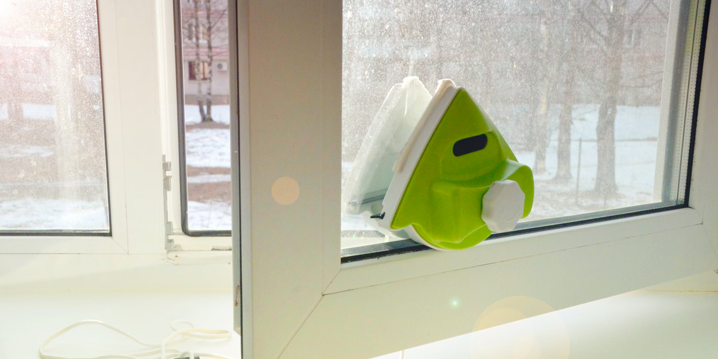 Lavez toujours les fenêtres à l'extérieur avec une vadrouille entourée d'un chiffon.Bien sûr, dans les coins éloignés, ce n'est pas très propre. Mais vous n'avez pas besoin de vous pencher par la fenêtre avec le risque de tomber.