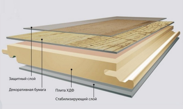 Le stratifié ressemble à une planche de parquet, de plus, sa couleur peut imiter tous les revêtements de sol. Il se compose de 3 couches, ce qui rend la structure durable et facile à poser.
