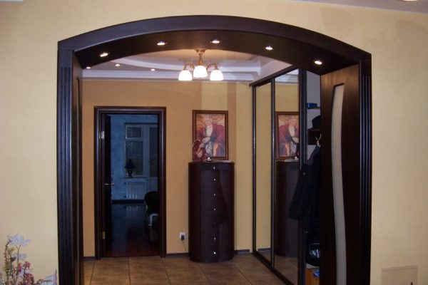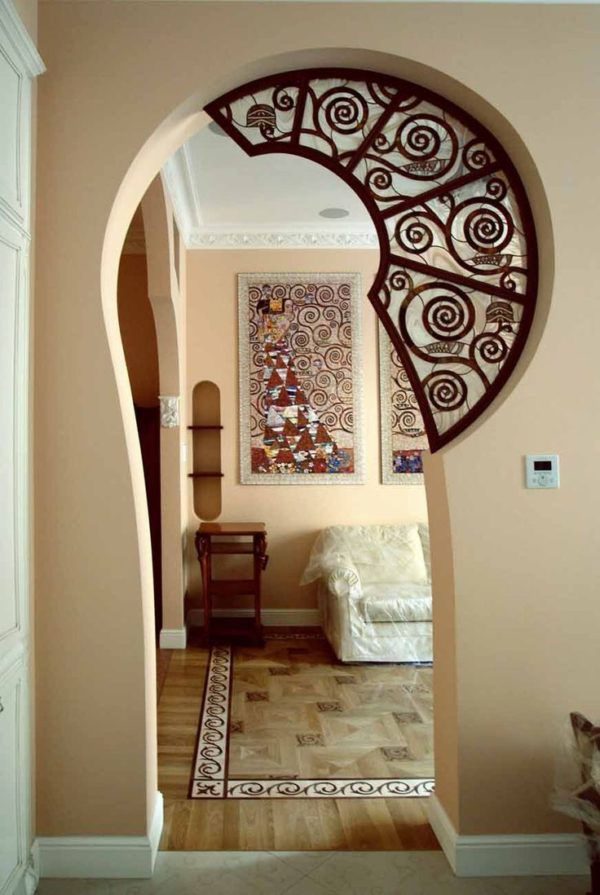Par exemple, l'arche faite de panneaux MDF doit être combinée à proximité avec des vantaux de porte. Souvent, une telle décoration se limite à recouvrir plusieurs couches de vernis incolore.