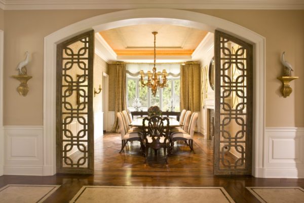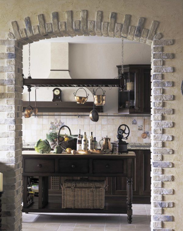- L'arche décorée de colonnes a fière allure, elle conviendra dans une grande pièce ou dans une maison de campagne. La forme des colonnes doit compléter l'intérieur et est faite dans le même style, vous pouvez les décorer avec des moulures en stuc.
