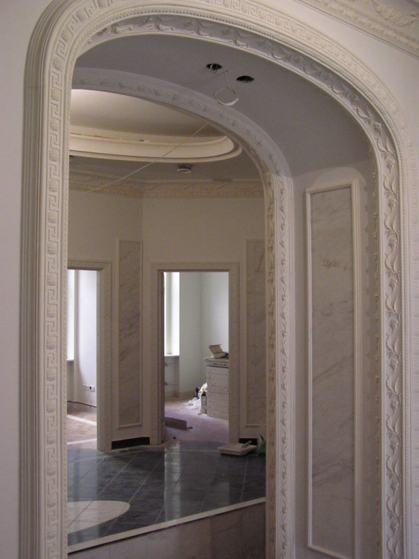 - La version classique du design du stuc de la porte cintrée, soit dit en passant, est très populaire aujourd'hui.