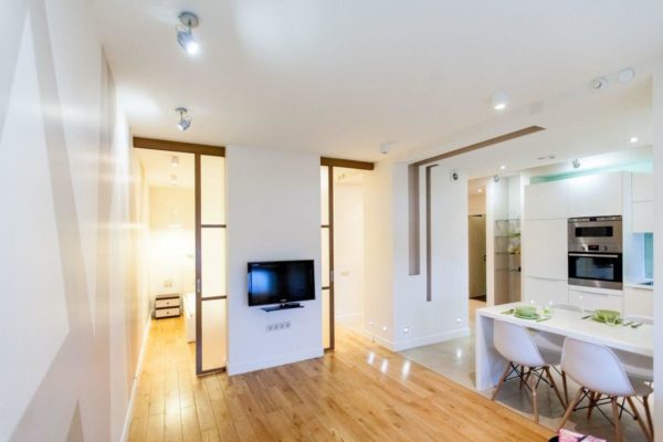 Plus il y a de zones dans l'appartement, plus il est important de maintenir le minimalisme. Vous devez vous débarrasser des piles, des objets qui n'ont pas été utilisés depuis longtemps. Et en retour, ils achètent des armoires au plafond, des fauteuils légers, des canapés, des tables et des chaises pliantes.