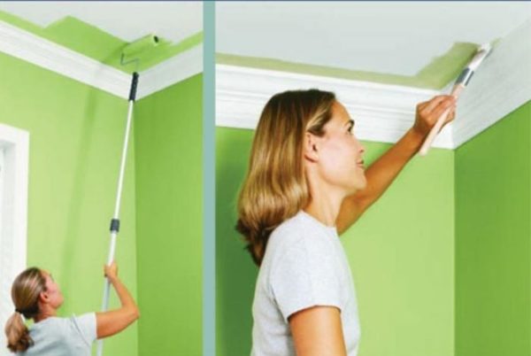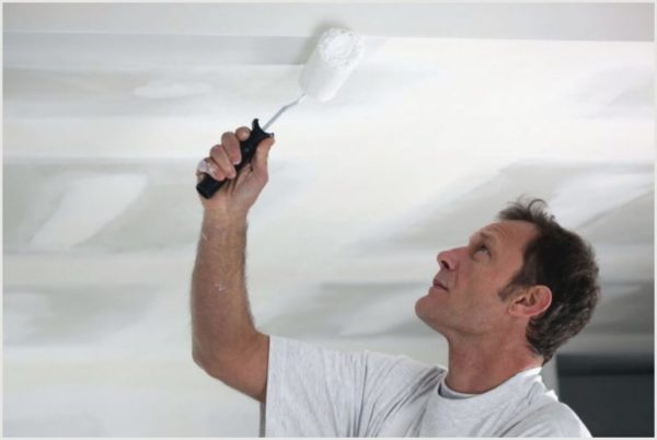 Il est normal que sa consistance lui permette de s'écouler librement de la surface. Deuxièmement, avec une seule couche de peinture, le plafond entier doit être couvert à la fois, sans interruption. Pas d'arrêts et de repos.