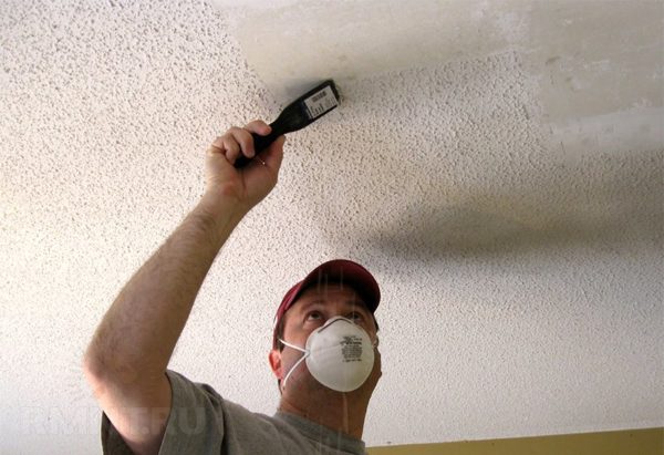 Avant de peindre le plafond avec de la peinture à base d'eau, sa surface est soigneusement préparée. S'il y a d'anciens revêtements, la préparation commence par leur élimination complète. Tous les éléments de séparation sont supprimés: plâtre, mastic ou papier peint.
