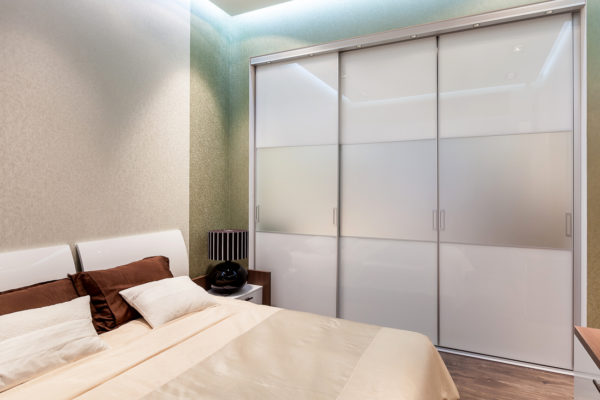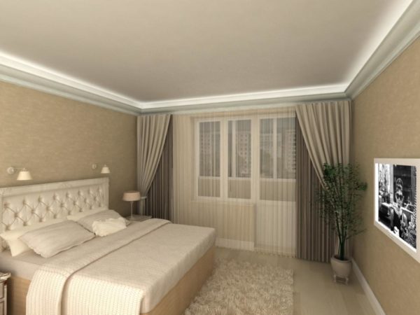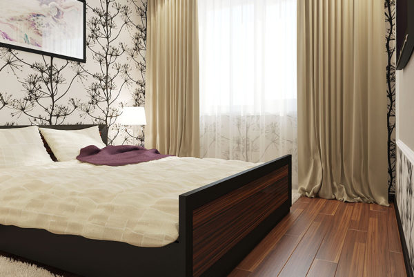 Étant donné que la chambre n'est pas un passage, il n'est pas nécessaire de couvrir de manière fiable les objets personnels des regards indiscrets et de la poussière. Habituellement, la chambre est la pièce la plus propre de l'appartement, donc des rideaux ou des rideaux suffiront.