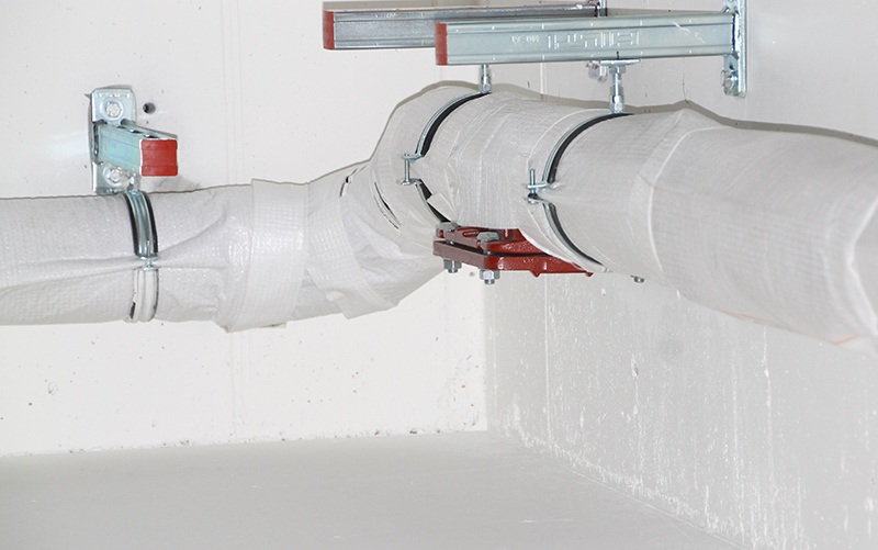 | Amortissement montant | Isolement de la contremarche au point de passage du sol. Pour le travail, un manchon est utilisé qui contient une charge en mousse de polyuréthane. Fixez le pipeline à l'aide de brides d'amortissement. S'il n'y en a pas, alors d'anciennes pinces sont utilisées. La seule mise en garde - vous devez vous assurer que le degré d'usure n'atteint pas un niveau critique. | La technologie n'est pas adaptée aux nouveaux bâtiments. |