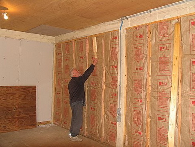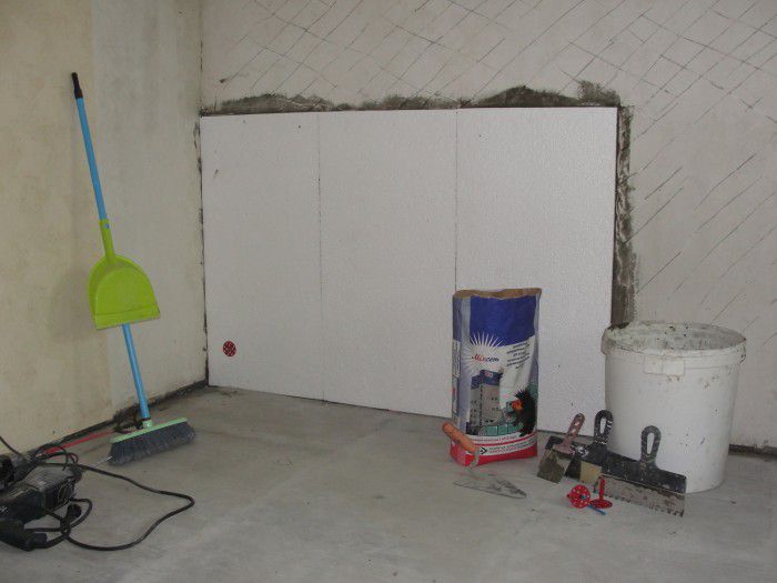 Après avoir fixé l'isolant, une caisse est installée au-dessus pour la pose de cloisons sèches ou de doublures. Ensuite, le plâtre est appliqué sur une couche uniforme, peinte ou collée avec du papier peint.