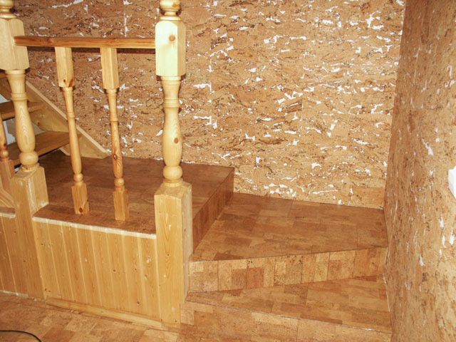 Le liège en soi a de bonnes propriétés décoratives. Par conséquent, il n'a pas besoin d'être recouvert de matériaux décoratifs supplémentaires. Il absorbe bien le son et joue le rôle d'isolation acoustique.