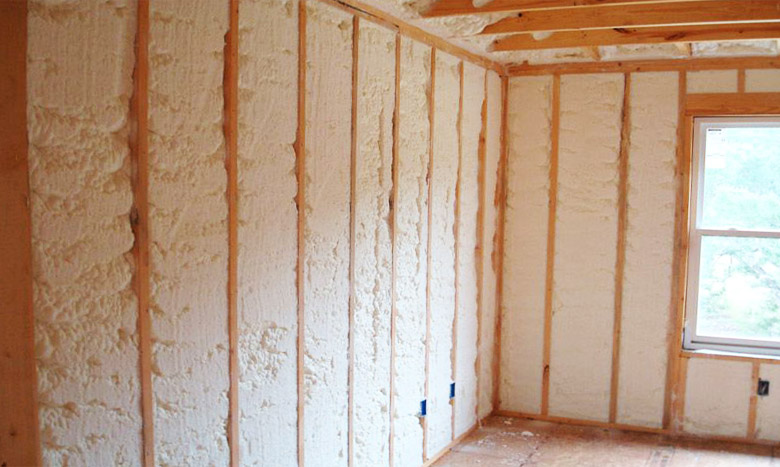 Un tel matériau est un polymère expansible. Pour créer une isolation thermique avec elle, vous avez besoin d'une installation spéciale. Avant d'appliquer le matériau, le mur est préparé, un cadre en bois est fixé dessus pour créer un support pour le matériau pulvérisé et donner une direction.Ensuite, des feuilles de cloison sèche sont fixées à ce cadre ou utilisées comme base pour d'autres finitions décoratives.
