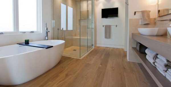 Les carreaux sont également généralement posés sur le sol de la salle de bain. Cela peut également être enregistré si du linoléum est utilisé.