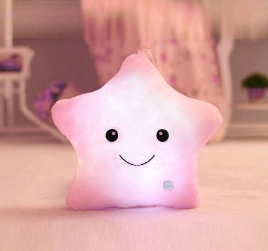 Des oreillers multicolores en forme d'étoile avec éclairage décoreront la chambre de n'importe quel enfant. Les enfants seront ravis avec de jolies étoiles.