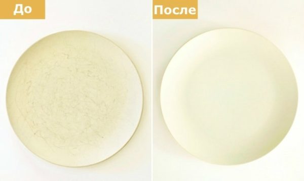 Ne vous fâchez pas à la vue des rayures sur vos plats préférés, il vaut mieux prendre une cuillerée d'eau et deux cuillères à soupe de soda, mélanger et traiter les endroits défectueux avec la pâte résultante. Essuyez la vaisselle avec un chiffon humide et vérifiez qu'il n'y a aucune trace de rayures.