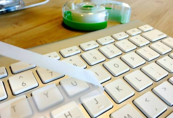 Le clavier obstrué de miettes et de saletés fines est un problème courant, surtout pour ceux qui aiment manger près du moniteur. Et pour le nettoyer, nous utilisons du ruban adhésif, il suffit de coller le ruban adhésif sur le clavier, de le retourner, de le secouer un peu et de déchirer le ruban. Toute la saleté disparaîtra avec la bande.