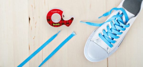 Au fil du temps, les lacets de vos chaussures préférées commencent à froncer les sourcils. Ils deviennent bâclés et les coller dans le trou devient de plus en plus difficile. Dans cette situation, la bande peut également aider. Enveloppez simplement les extrémités des lacets avec du ruban adhésif.